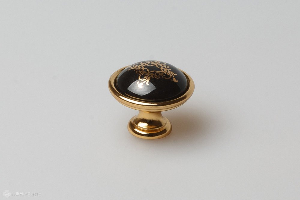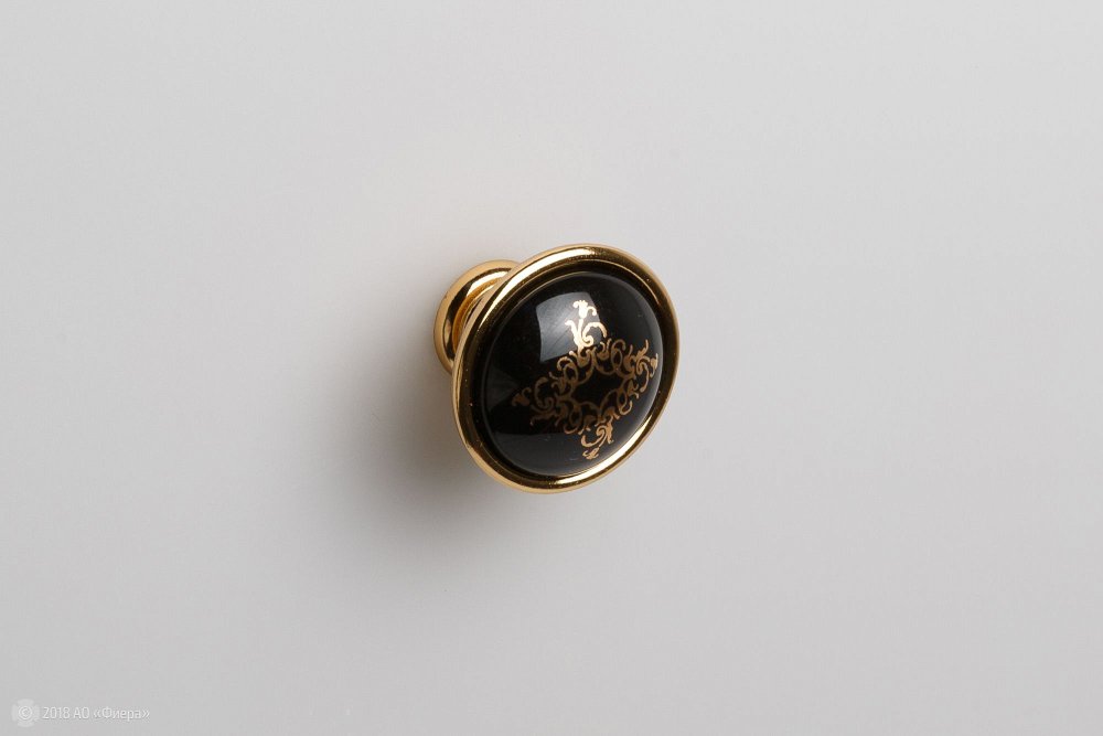 New Deco мебельная ручка-кнопка диаметр 40 мм золото и черная керамика с рисунком |