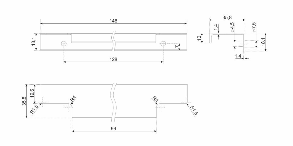 Ray торцевая мебельная ручка для фасадов 150 мм нержавеющая сталь |